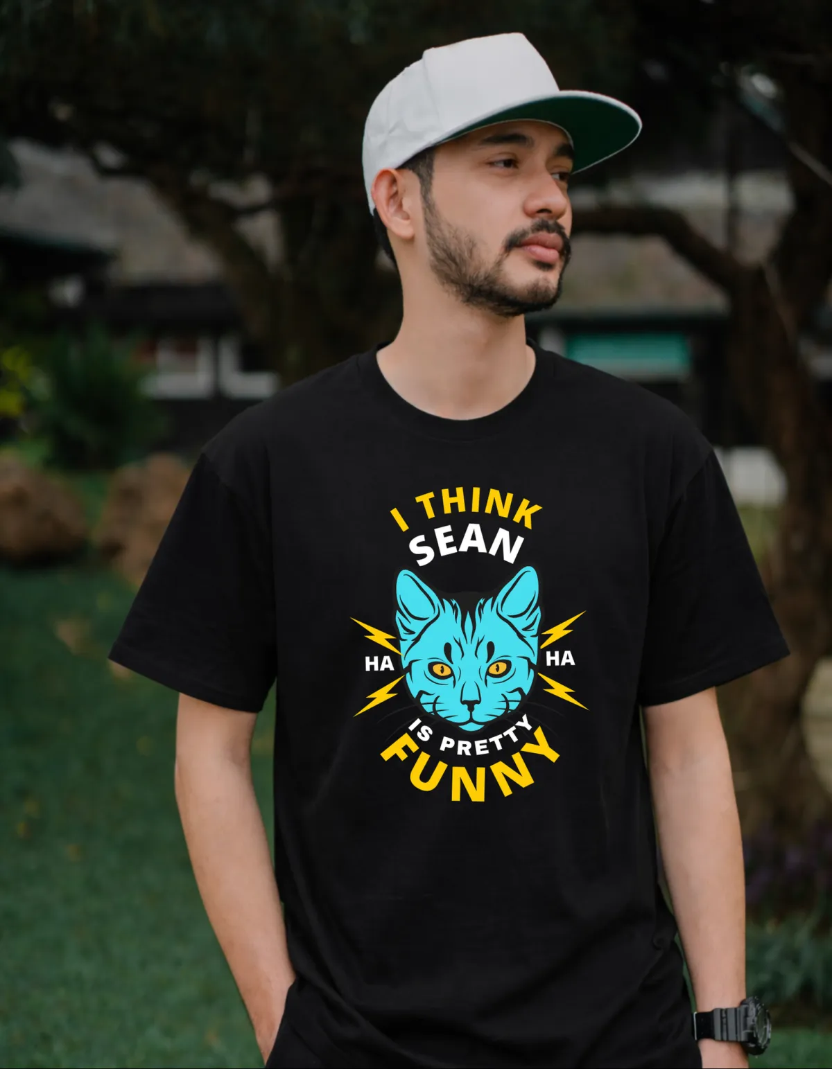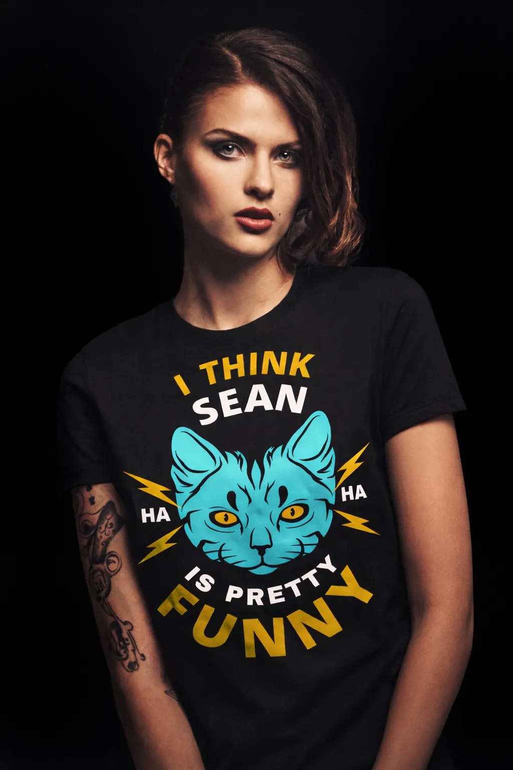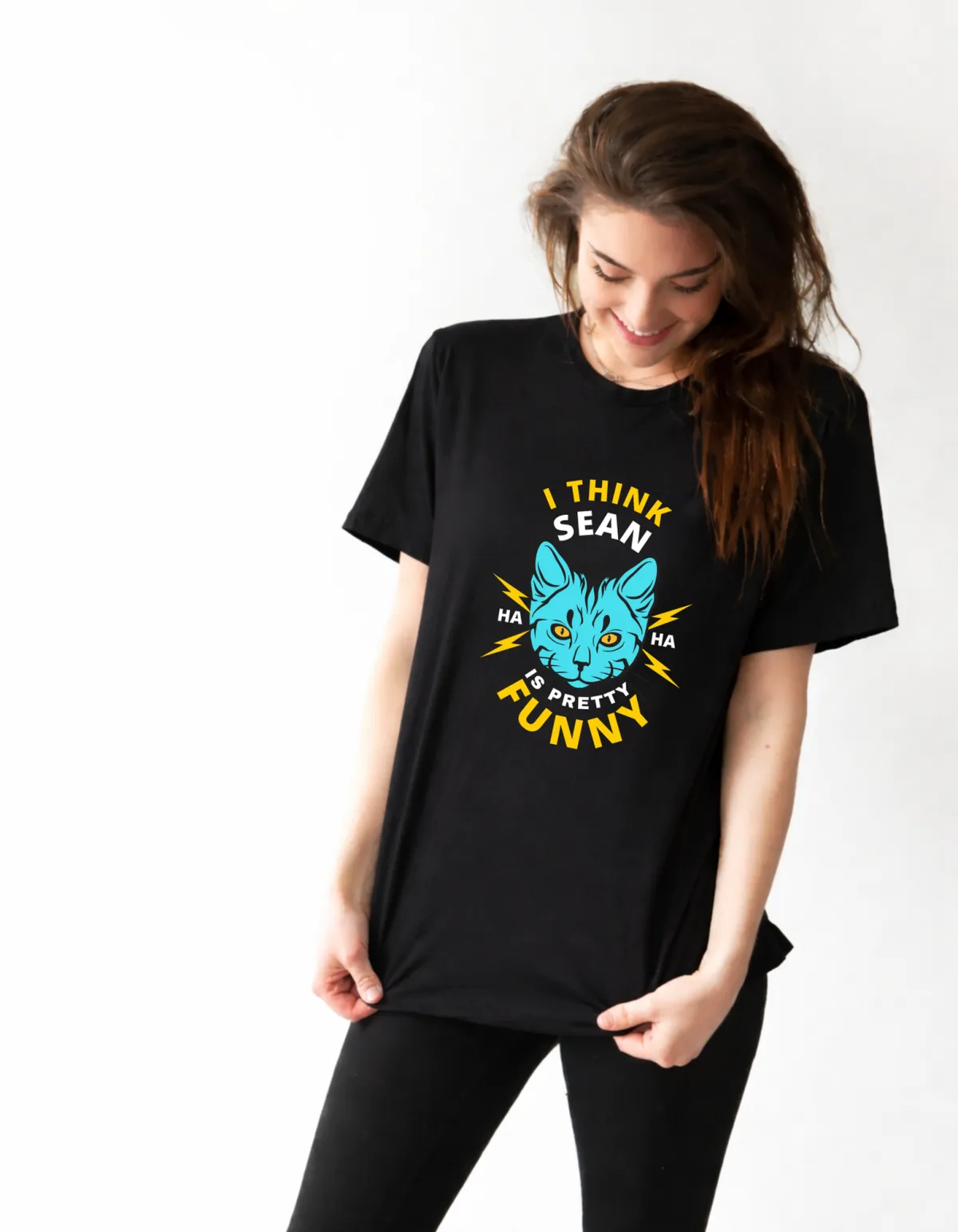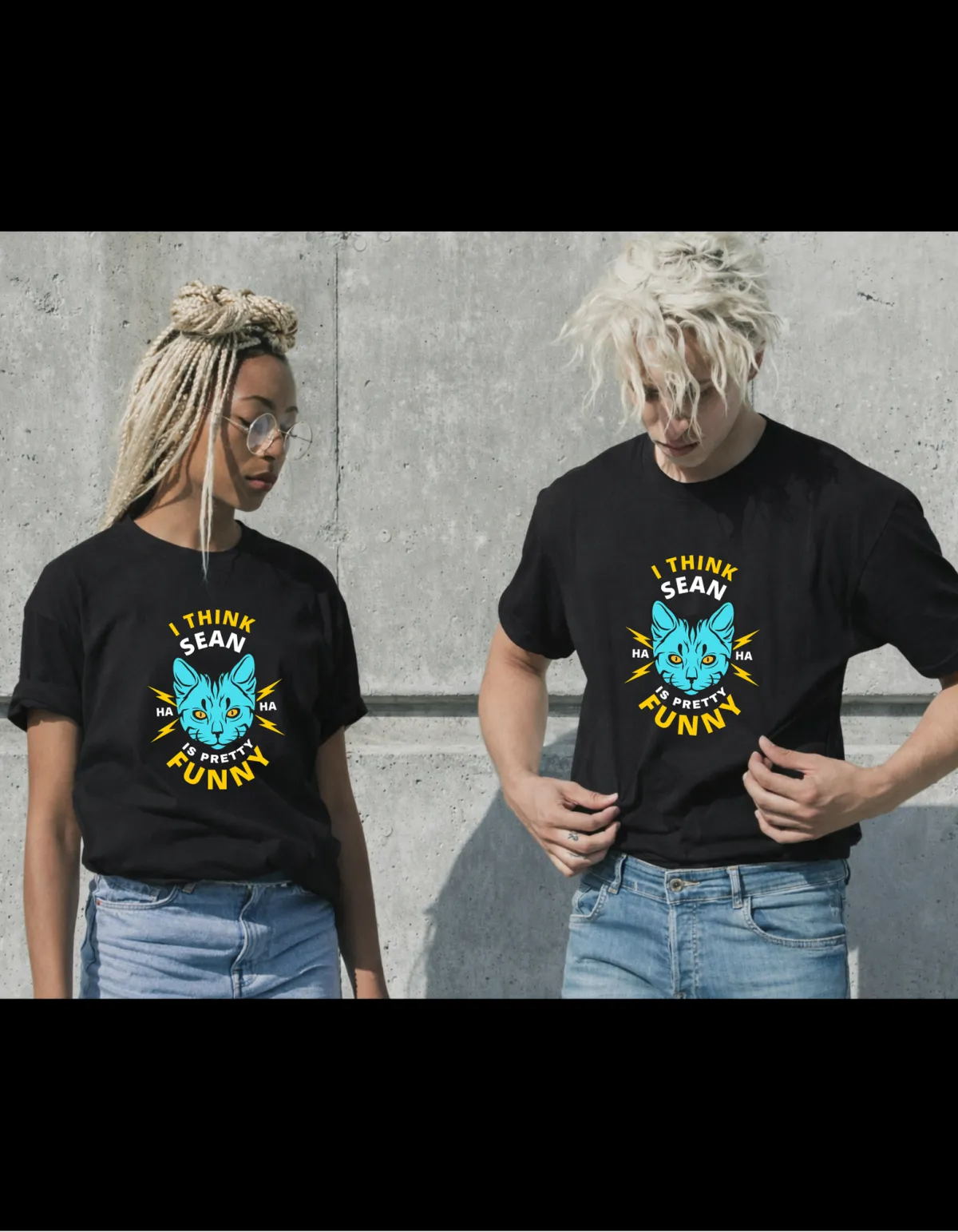 My boyfriend loves to wear matching Tees, I mean, he LOVES it. Like to a point where I am like 'Ok lets chill a little bit on the matching tees.' I thought we would have to breakup over it, until he brought home these His and Hers I THINK SEAN IS PRETTY FUNNY HA HA shirts; now I don't mind it one bit.